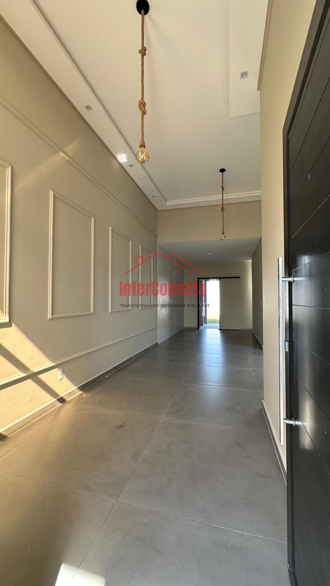 Sala ampla com pé direito alto
